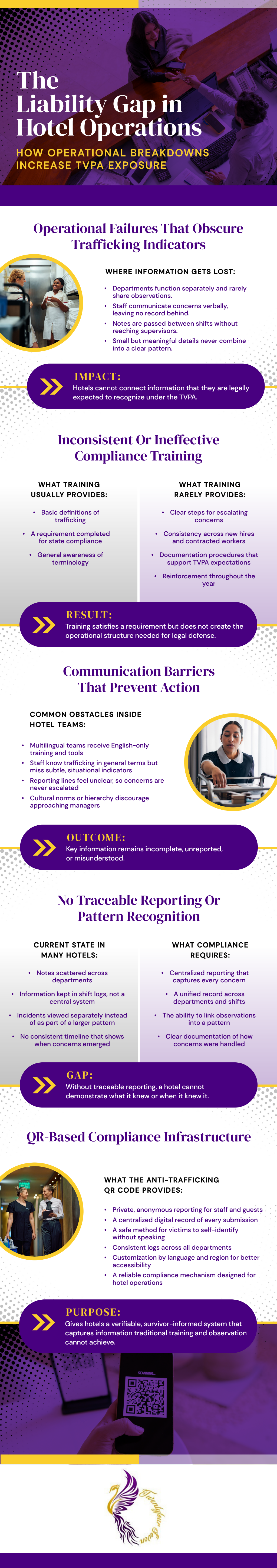 Programs such as anti-human trafficking training play a role here by helping staff recognize concerning behaviors and respond through proper channels. When awareness is uneven, the liability gap widens.